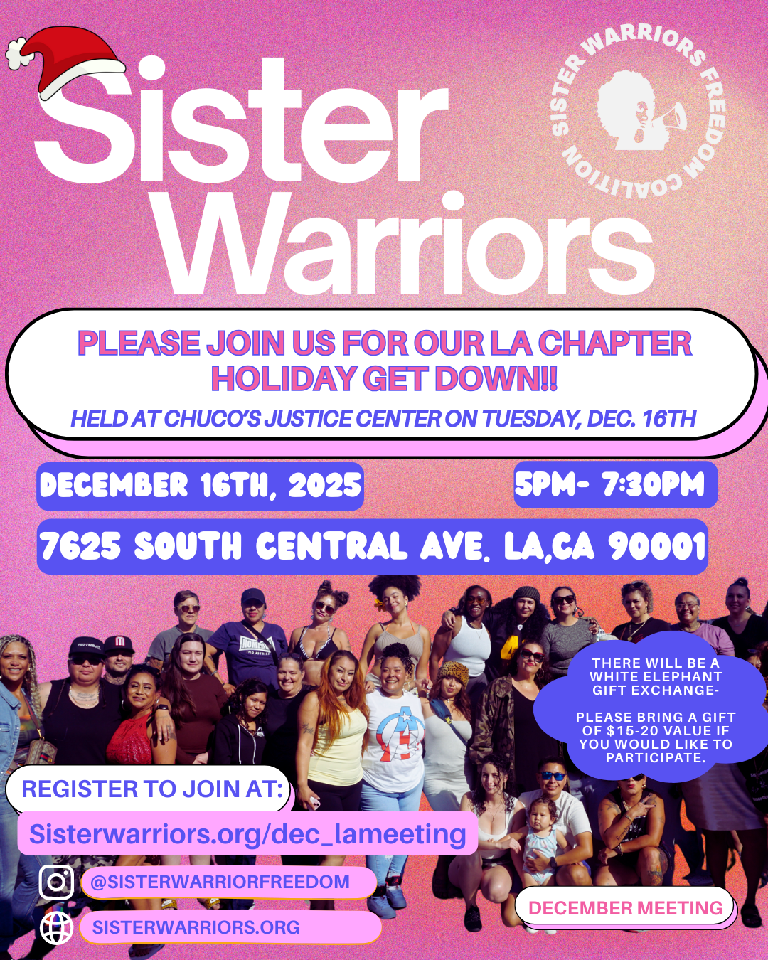 This chapter meeting is our HOLIDAY GET DOWN and will be held at CHUCO'S JUSTICE CENTER! 📢