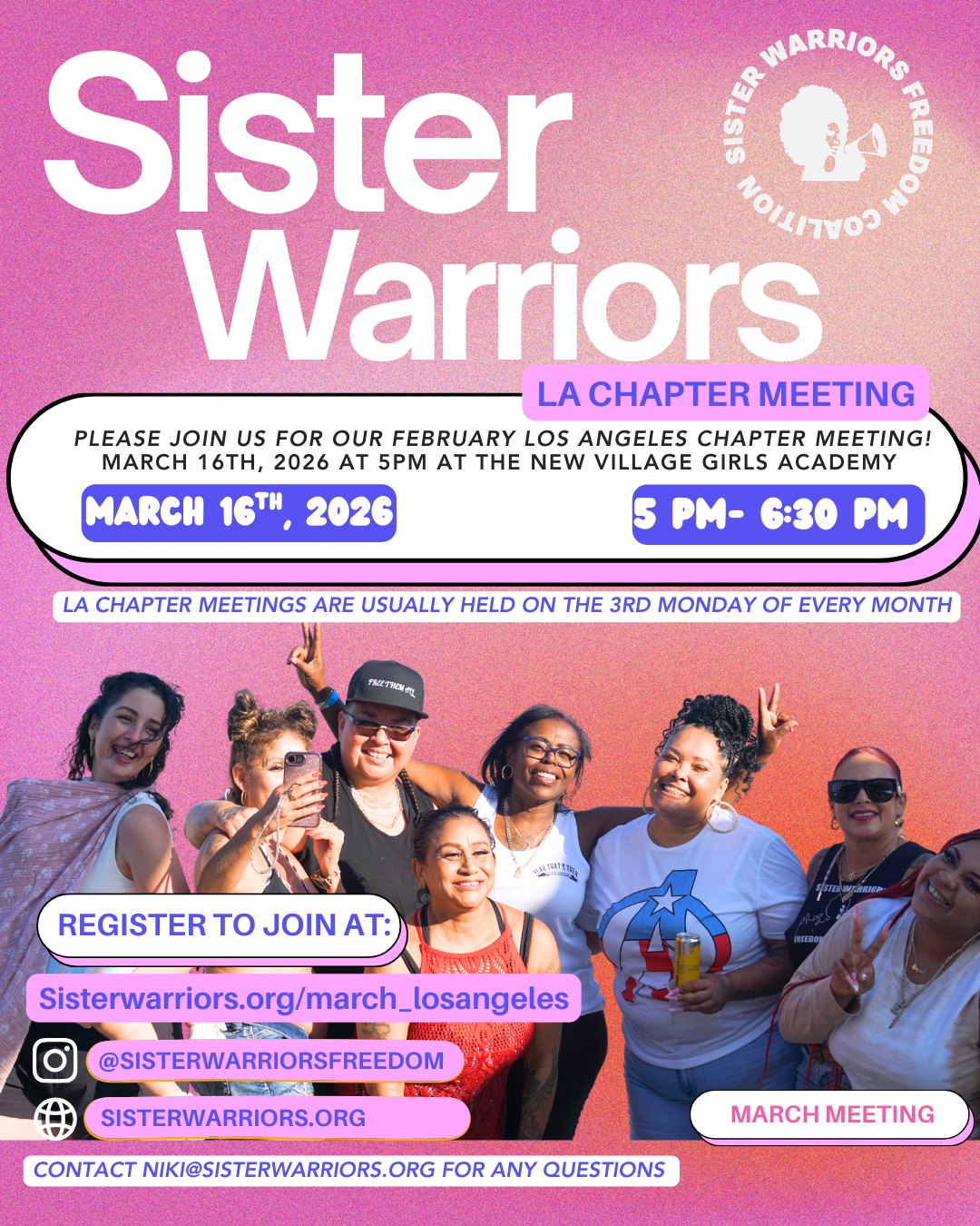 It's that time again to join us for our LA Sister Warriors monthly chapter meeting. Please join us as we meet to build, break bread, hear exciting updates, and ways to plug into the work.
