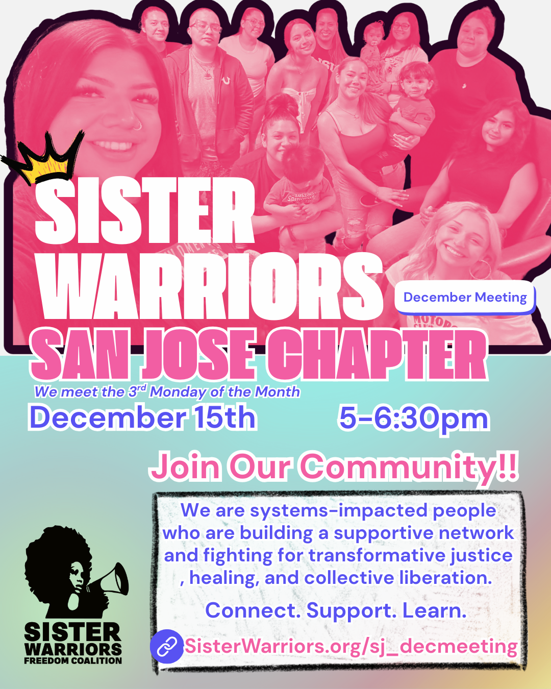 San Jose Sister Warriors! Our November meeting is coming up soon- please join us as we gather in community and power.